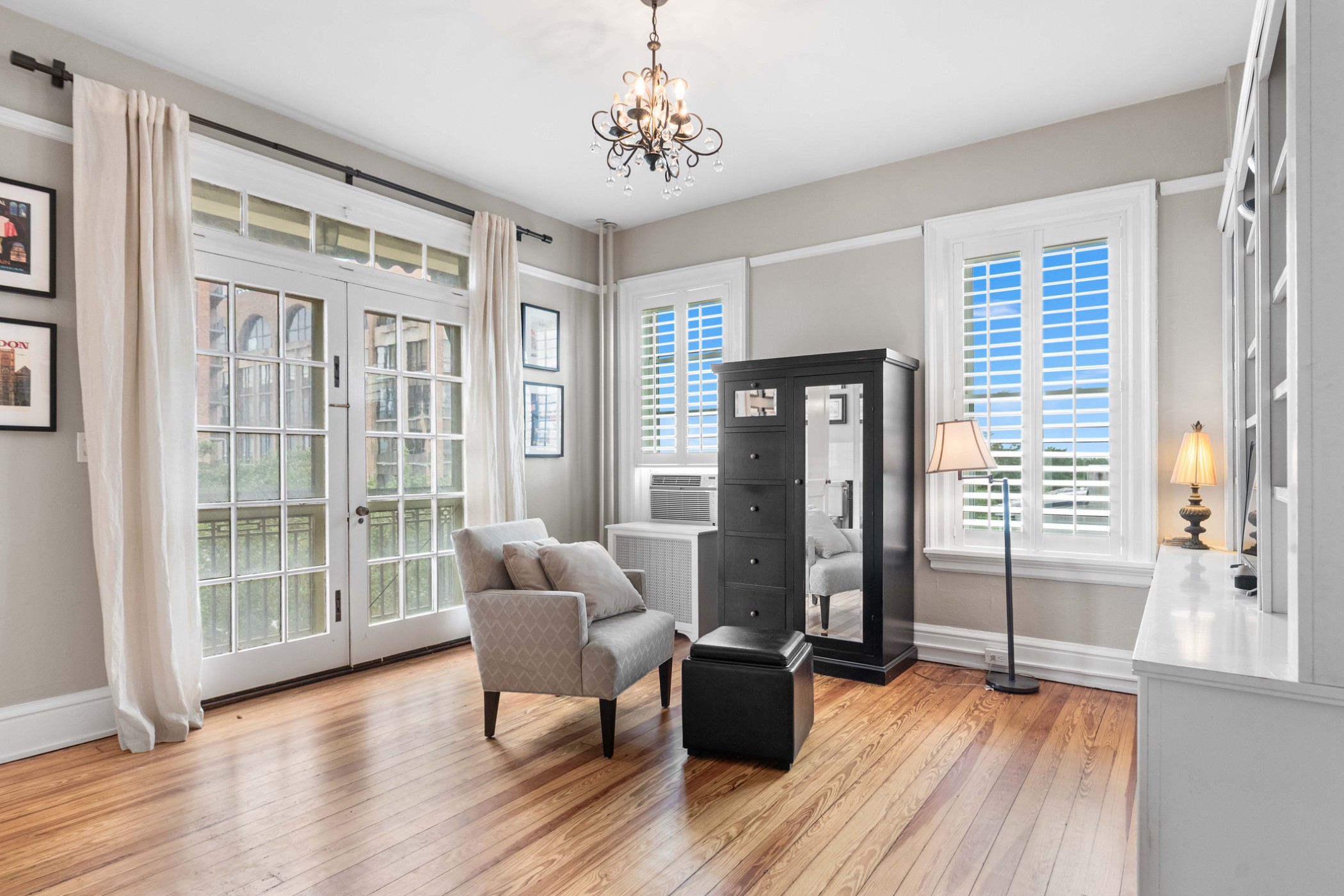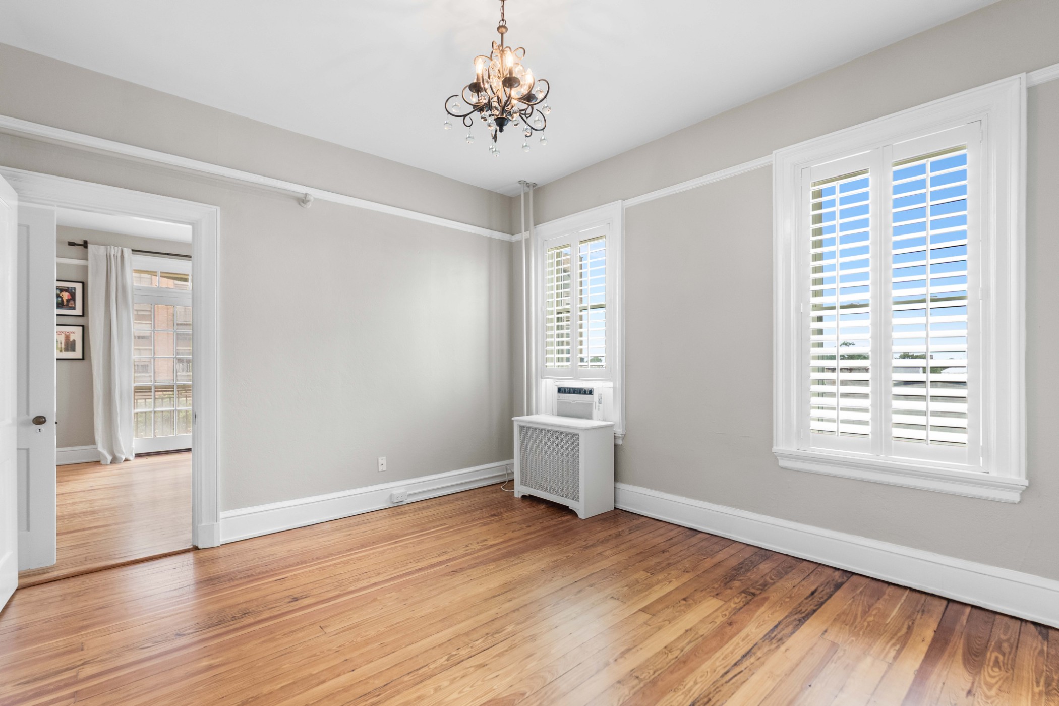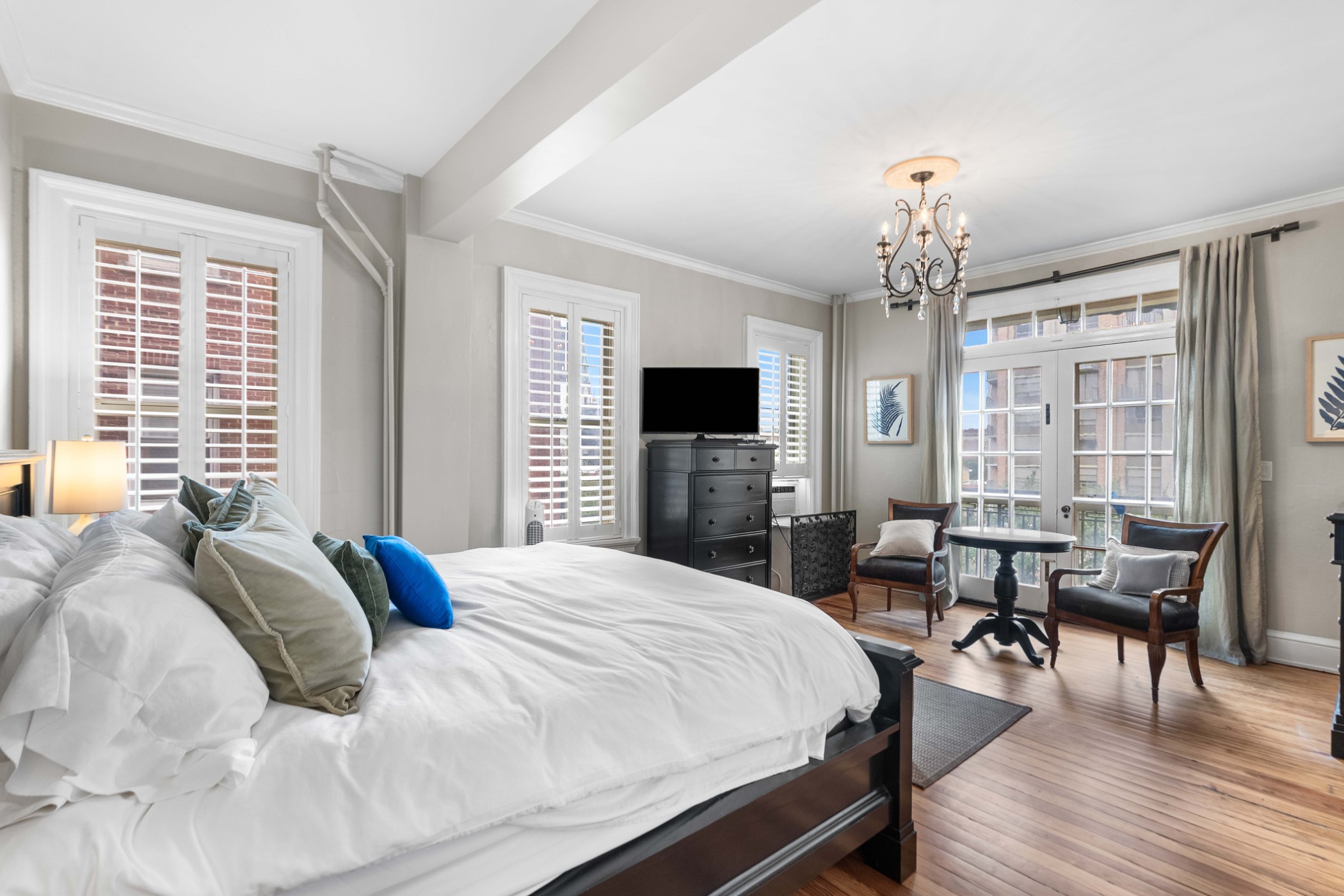 An exquisite urban haven above the city with an understated elegance that perfectly balances comfort and livability. A fine example of early 20th century architecture, the Derenne building stands as one of Savannah’s most prominent residential landmarks. Enjoy the pleasantry of natural light filtered into the living spaces through French doors that open to views of the Cathedral spires and the surrounding historic cityscape. Additional highlights include refinished hardwood floors throughout the spacious living areas and an upgraded kitchen that offers both functionality and style. Providing security and convenience, this residence is perfectly suited for a lock-and-leave lifestyle or a full-time home in the heart of Historic Landmark District.