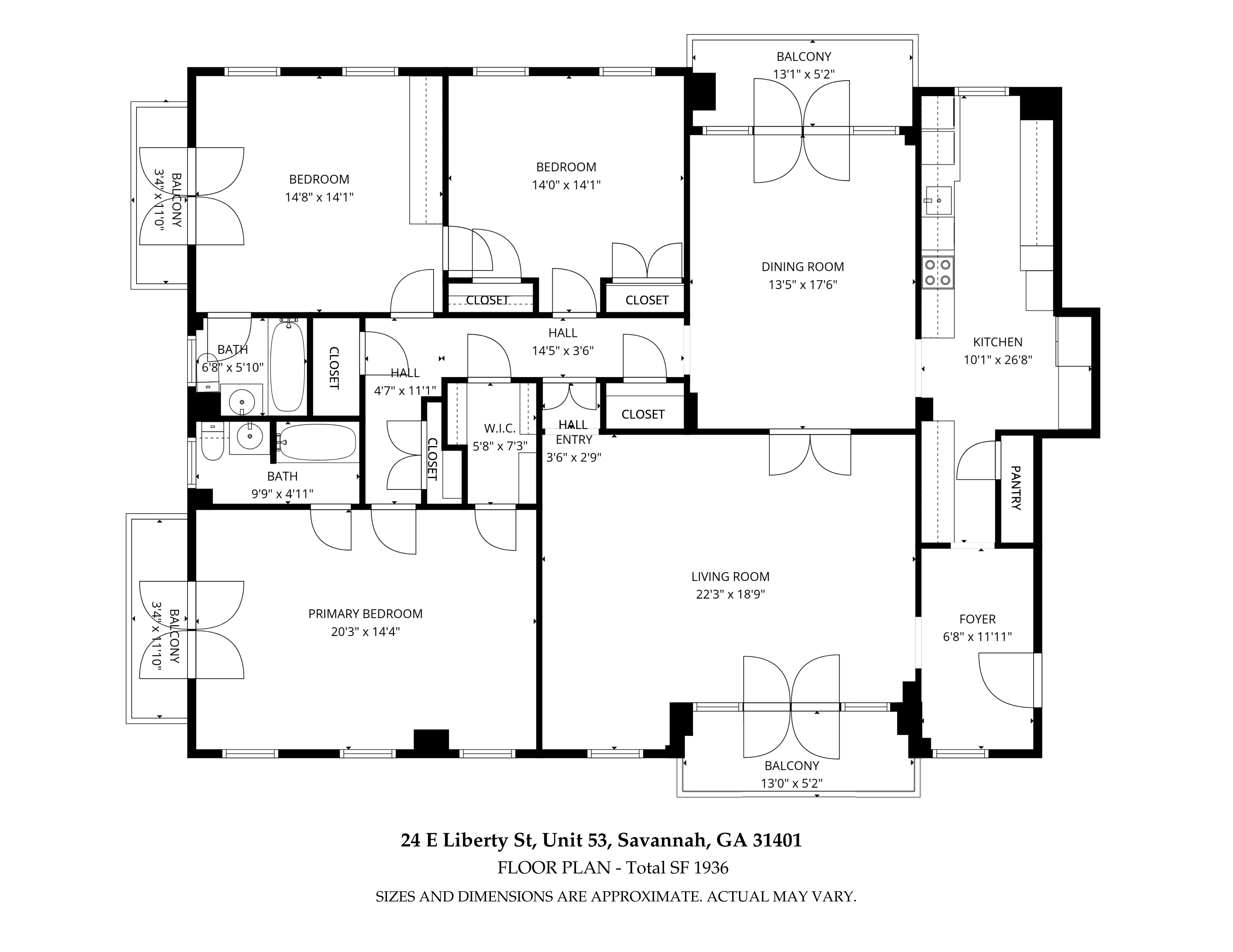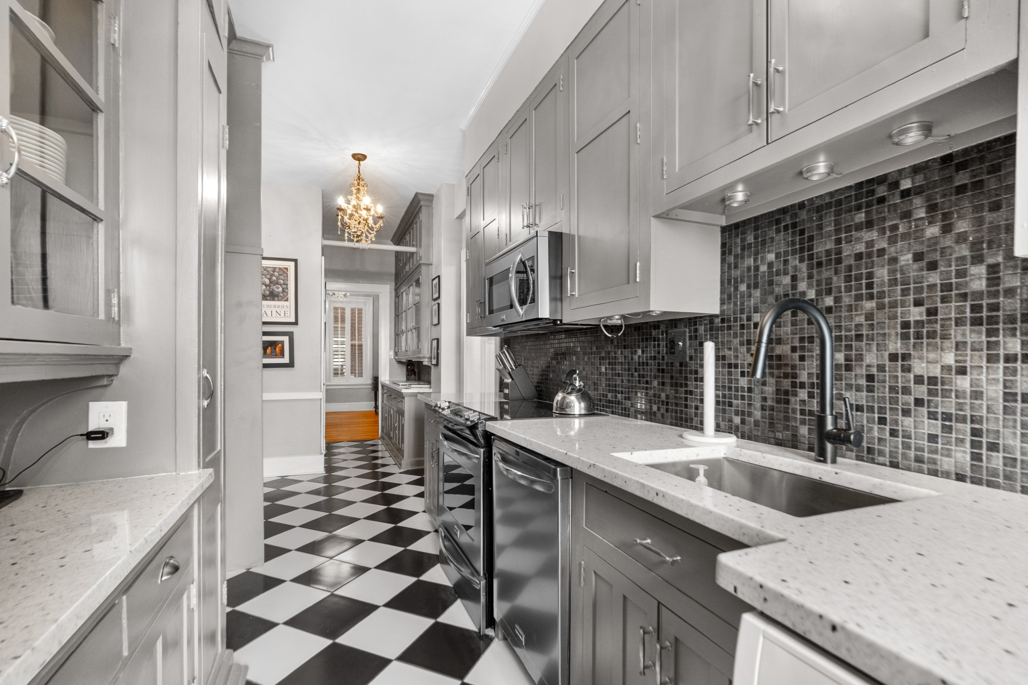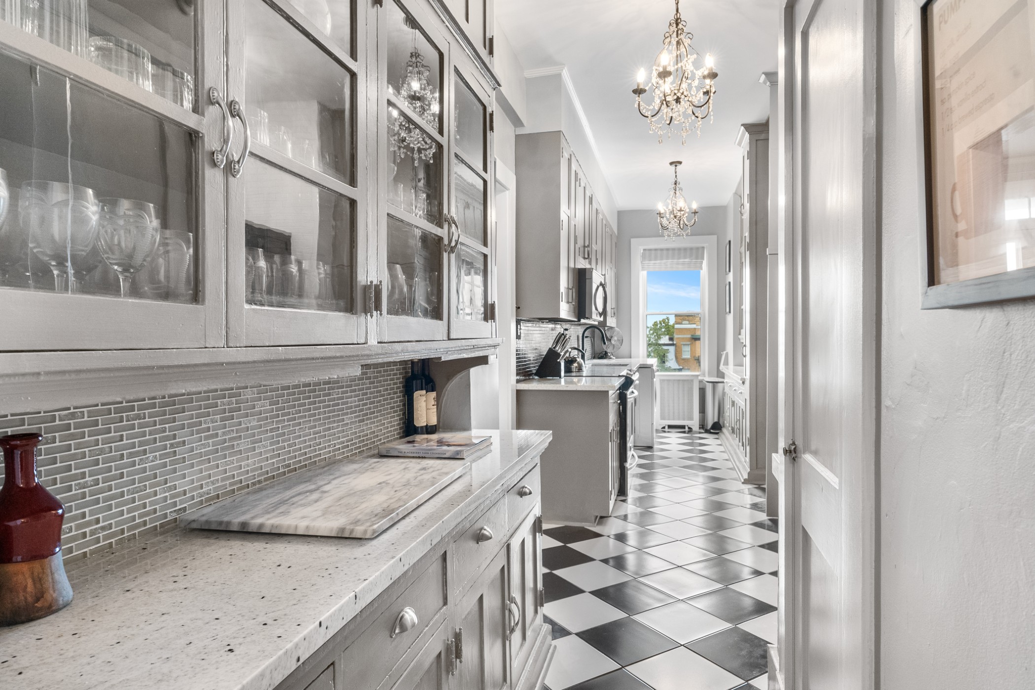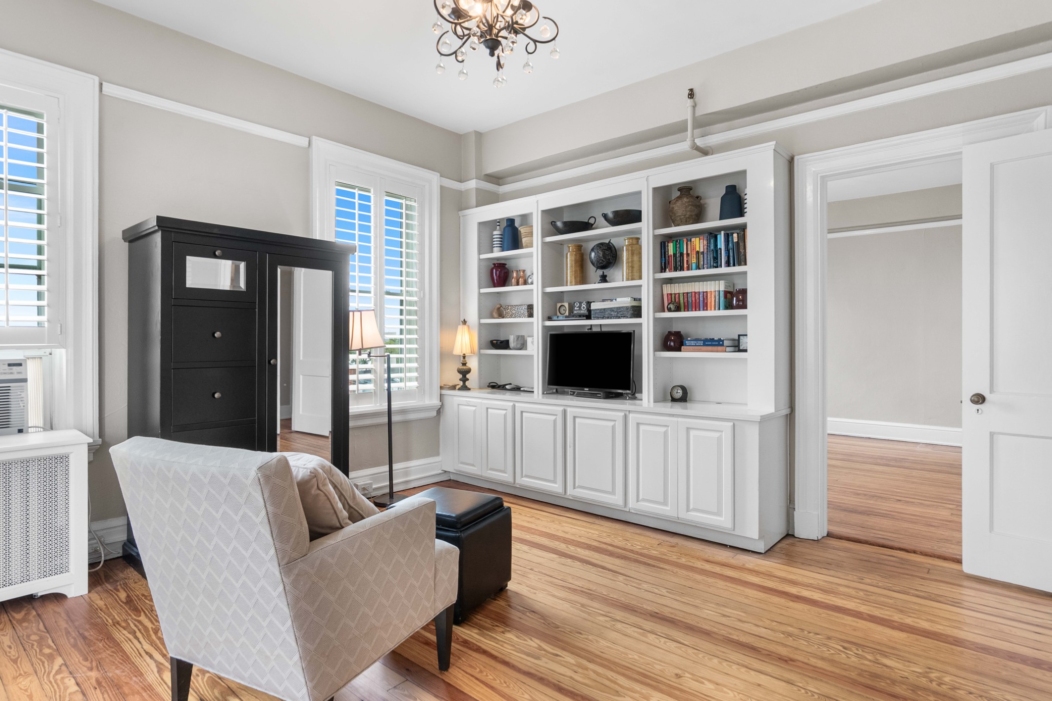 An exquisite urban haven above the city with an understated elegance that perfectly balances comfort and livability. A fine example of early 20th century architecture, the Derenne building stands as one of Savannah’s most prominent residential landmarks. Enjoy the pleasantry of natural light filtered into the living spaces through French doors that open to views of the Cathedral spires and the surrounding historic cityscape. Additional highlights include refinished hardwood floors throughout the spacious living areas and an upgraded kitchen that offers both functionality and style. Providing security and convenience, this residence is perfectly suited for a lock-and-leave lifestyle or a full-time home in the heart of Historic Landmark District.